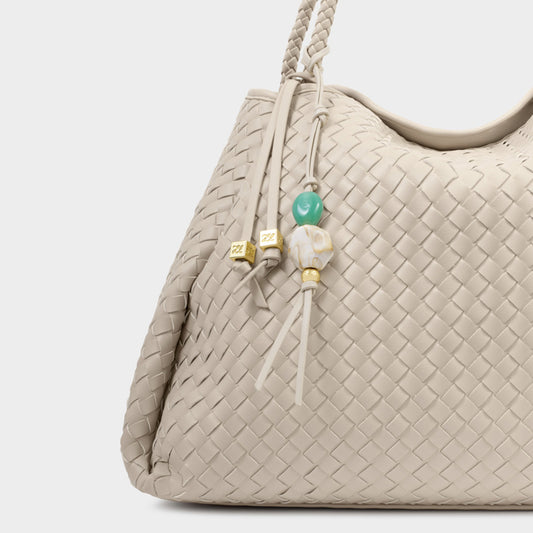 Beaded Keyring Bag Charm Oyster