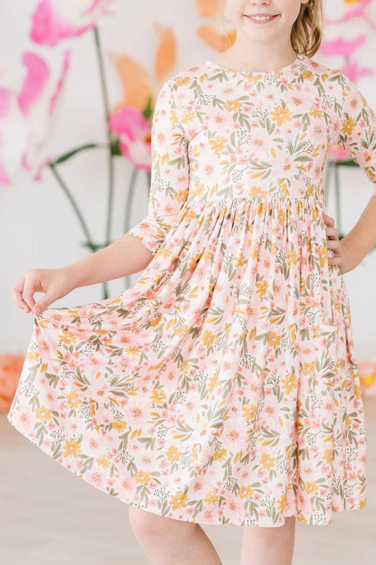 Pastel Petals 3/4 Sleeve Pocket Twirl Dress