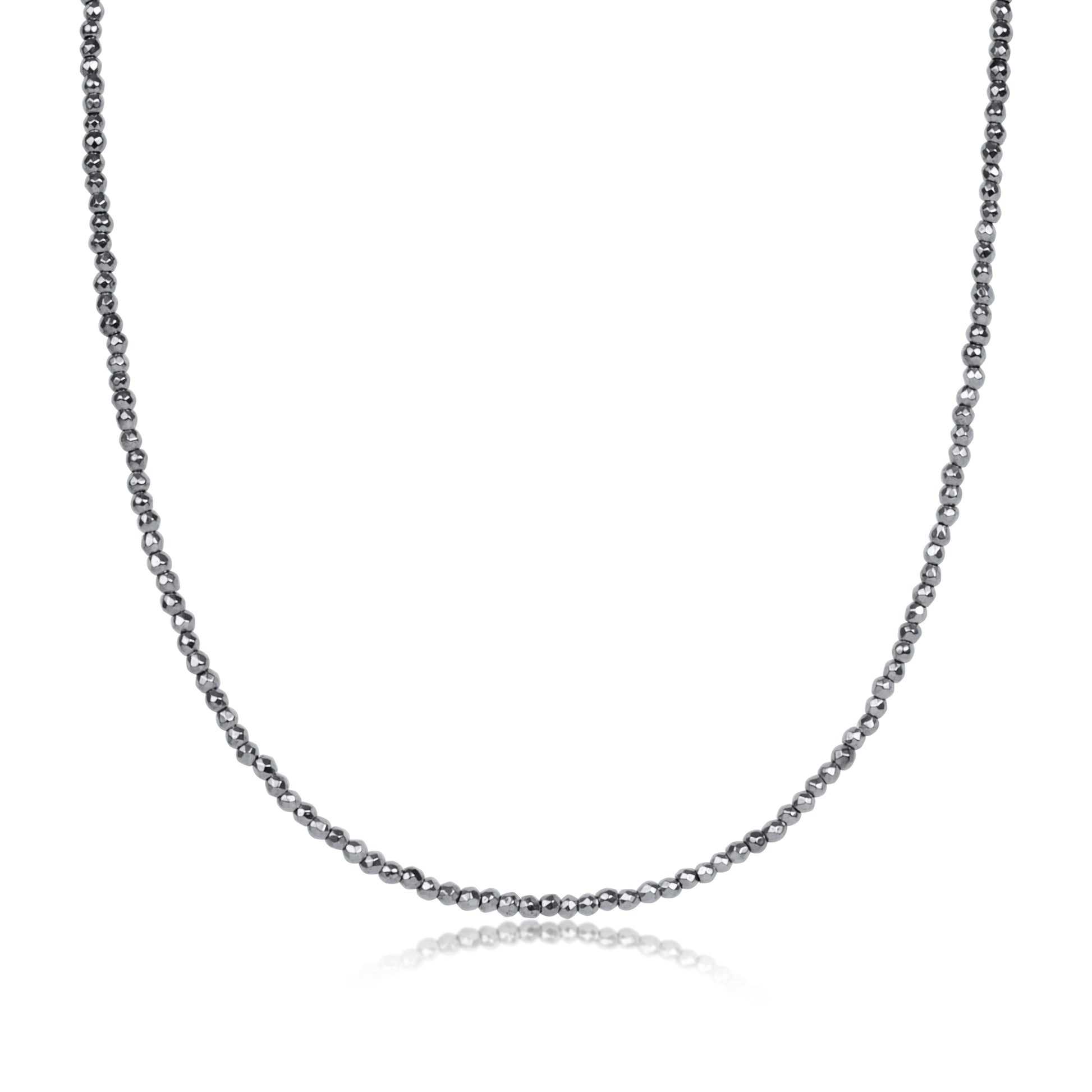15" Choker Silver Faceted Hematite 2mm Bead