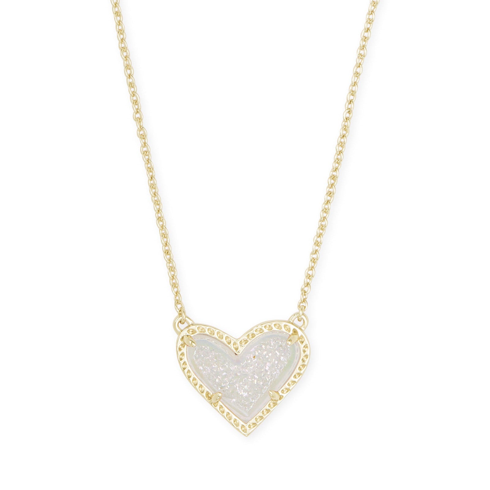 Ari Heart Short Pendant Necklace Gold Iridescent Drusy