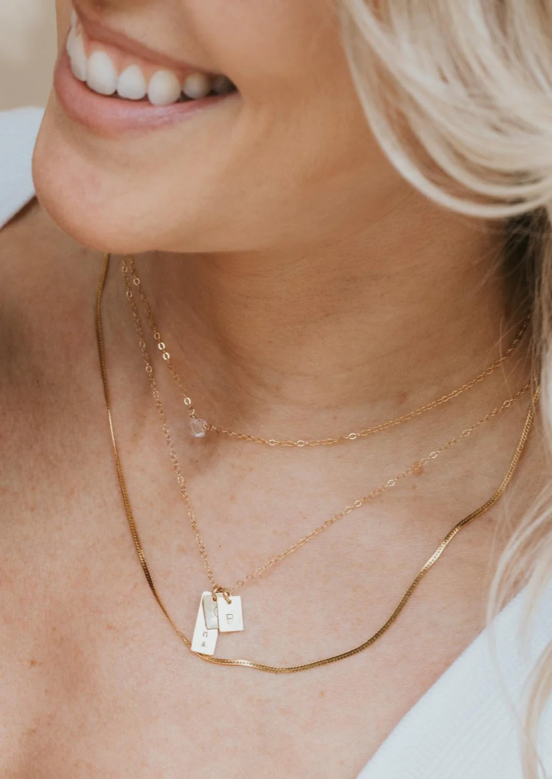 We updated our original Mama Vertical Bar necklace to a shorter more modern bar design and added square pendant add-ons for the initials of your favorites. She’s still simple and minimal and full of very special meaning.