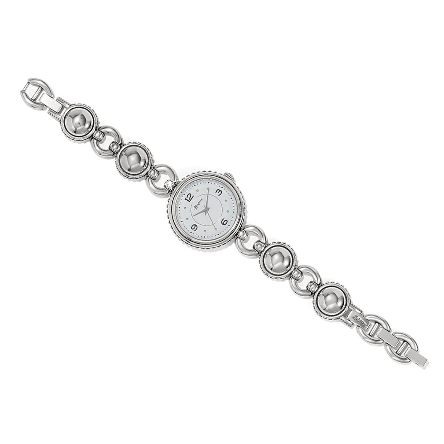A matcher to Pretty Tough jewelry, this statement-making watch has a jewelry feel. High dome, highly polished studs and a white dial give it a modern look. As with all Brighton watches, it has a Japanese movement – the world’s finest watch movement.
