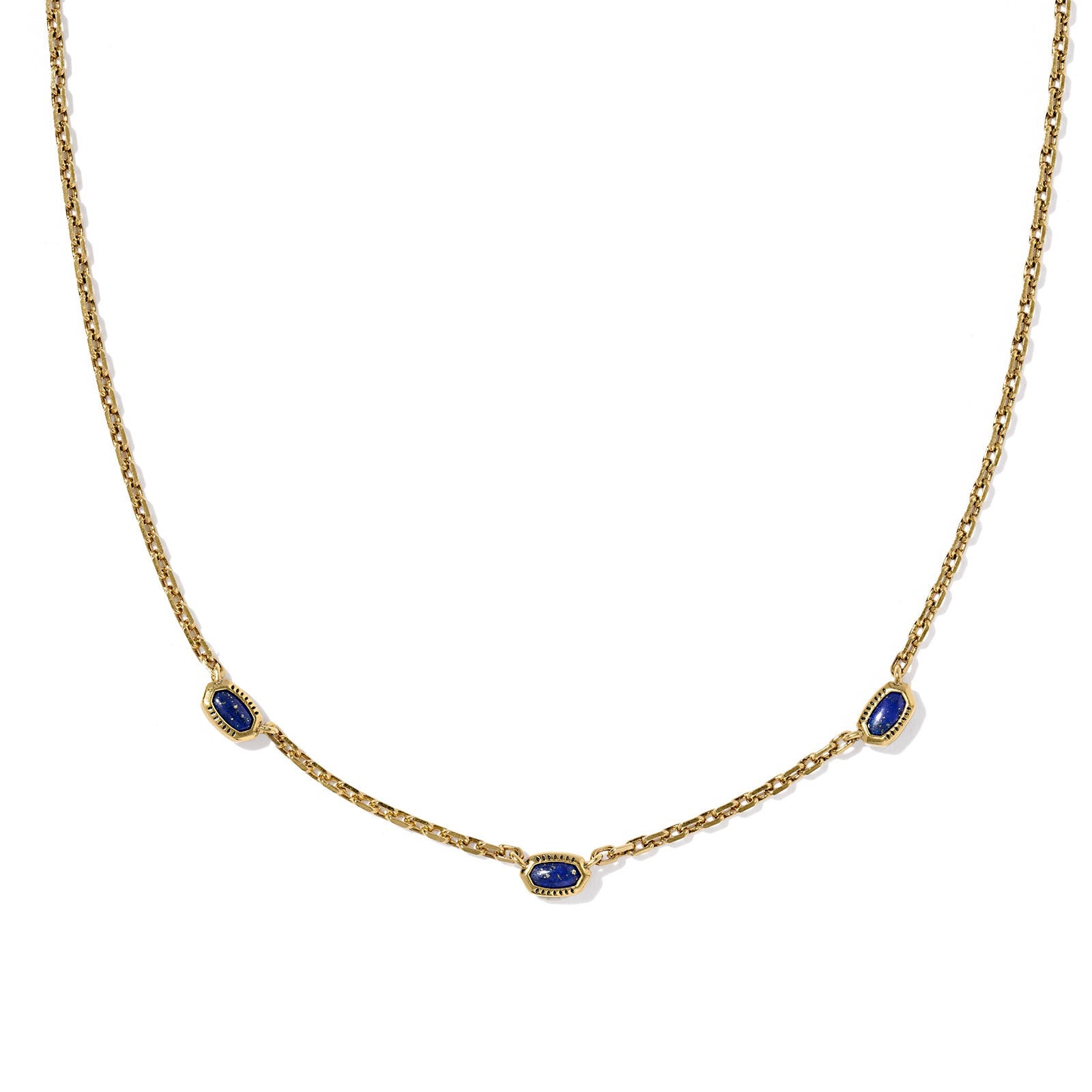 Mini Elisa Three Stone Strand Necklace Vintage Gold Blue Lapis
