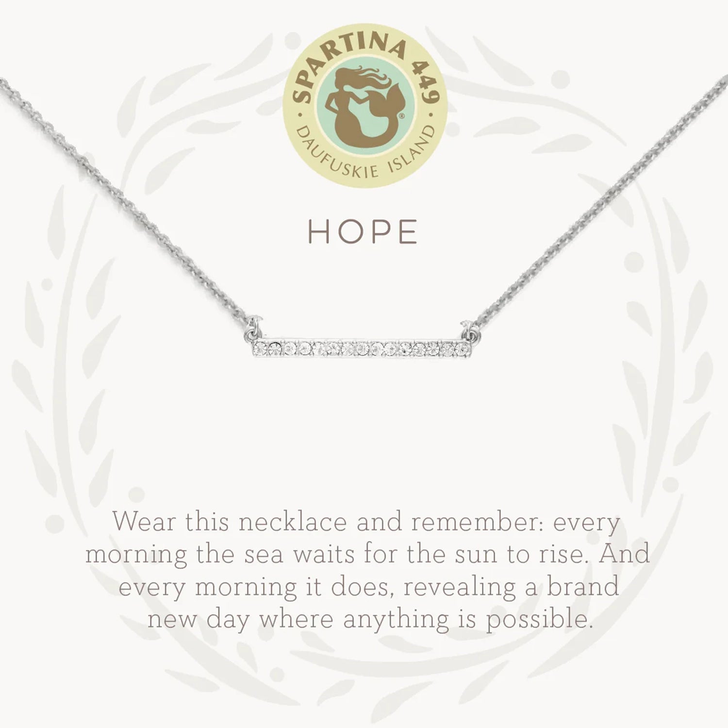 Wear our Hope Necklace as a reminder that anything is possible. Featuring a gem bar pendant, this special piece comes packaged inside a beautiful box with the message: "Every morning the sea waits for the sun to rise. And every morning it does, revealing a brand new day where anything is possible."