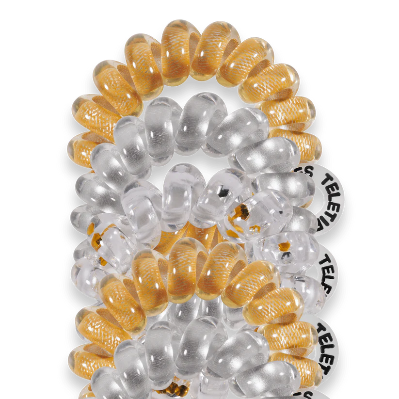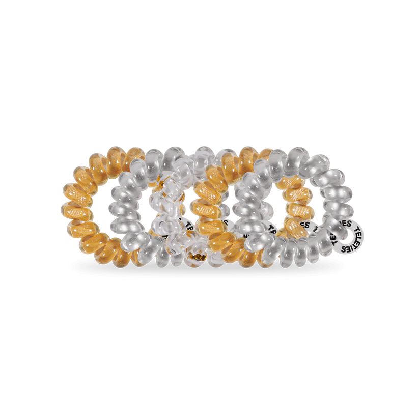 Starstruck Tiny Hair Ties in Silver and Gold are the ultimate solution for securing braid ends, styling little kids' hair, or managing ultra-thin strands. These mini hair coils are designed to fit an adult finger like a ring rather than a bracelet, offering a strong, damage-free grip that keeps hair in place all day—without breakage, creases, or headaches.